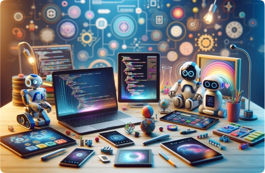 We prepare young minds for an innovative future by igniting imagination, fostering essential soft skills, and providing engaging hands-on learning experiences in coding, STEM, and interactive classes.